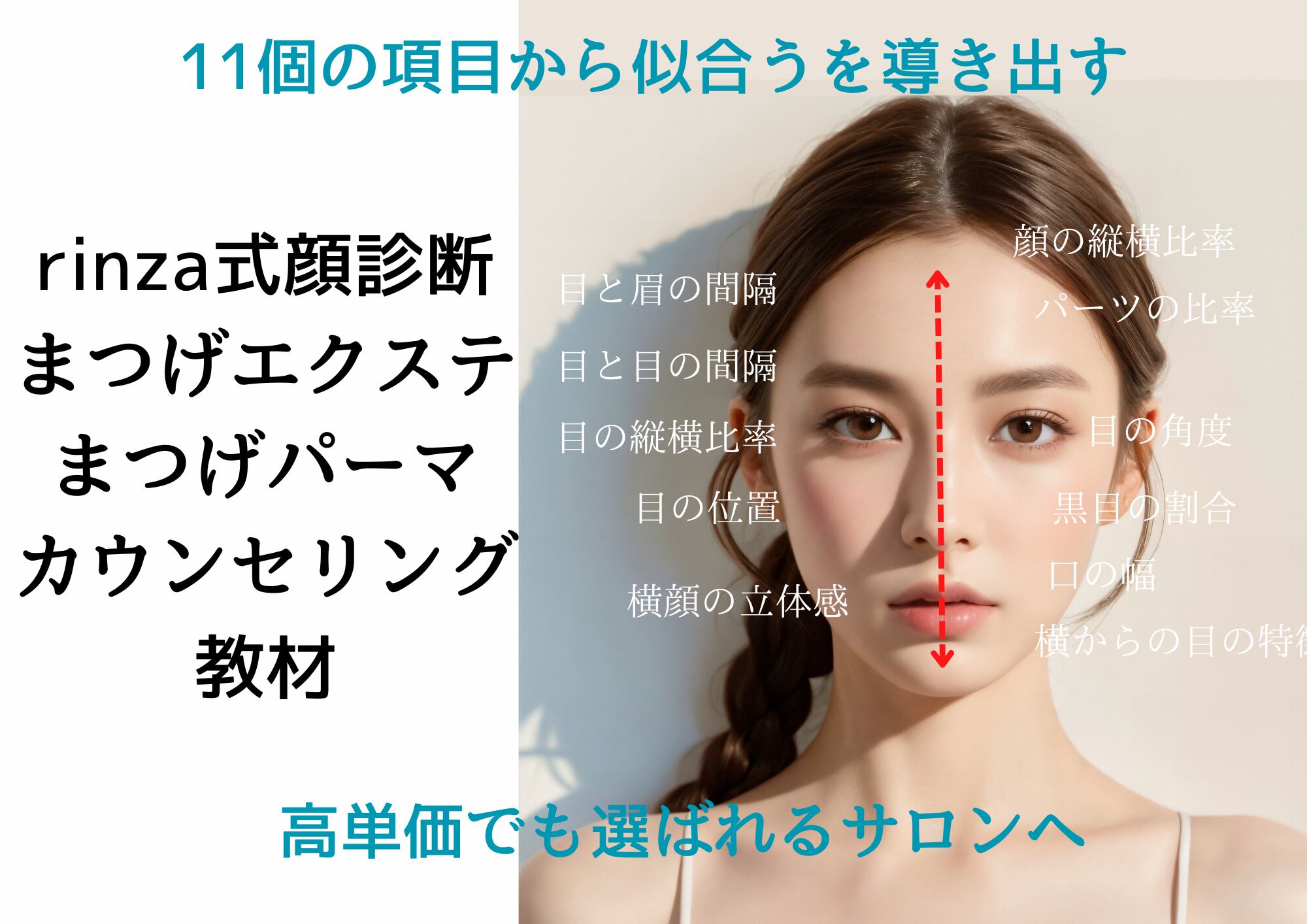 rinza式顔診断のエクステとまつげパーマの両方を実践できる、総合カウンセリング力を高める教材セットです。2つのメニューを揃えることで、より専門性のあるサロンをアピールできます。